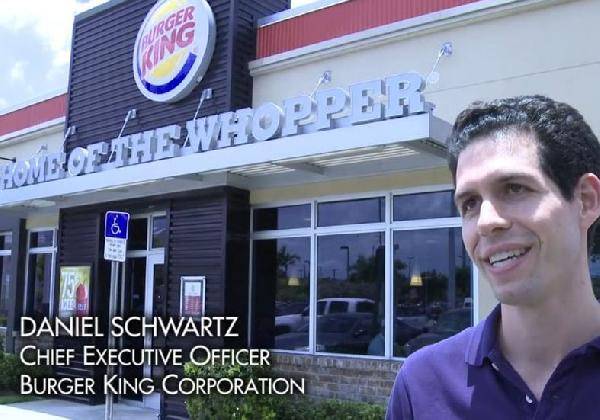 五爸是叫施瓦茨,是汉堡王第21位CEO,他上任两天,就为汉堡王清洗了15个卫生间,在免下车窗口招待客人,还学会了在35秒内做一个皇堡,汉堡王第一次感觉自己,还能被当作亲生儿子一样养。