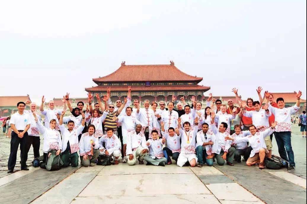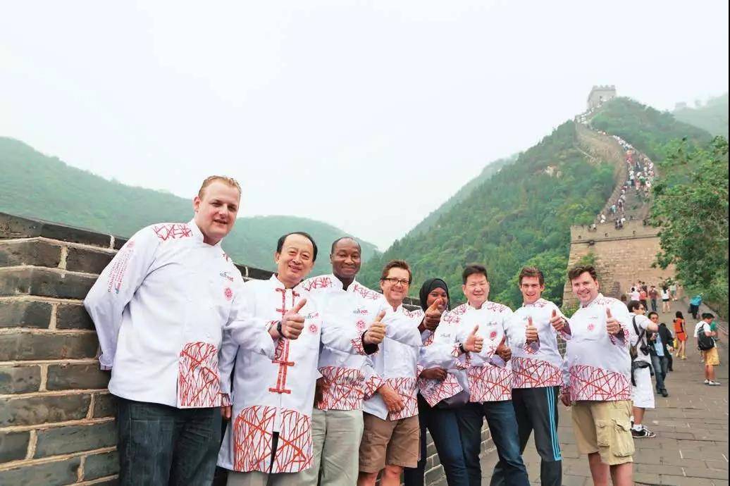 参赛的中外名厨们在鸟巢签裸烹宣言
