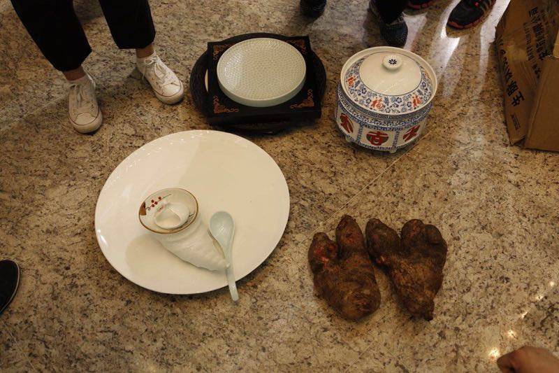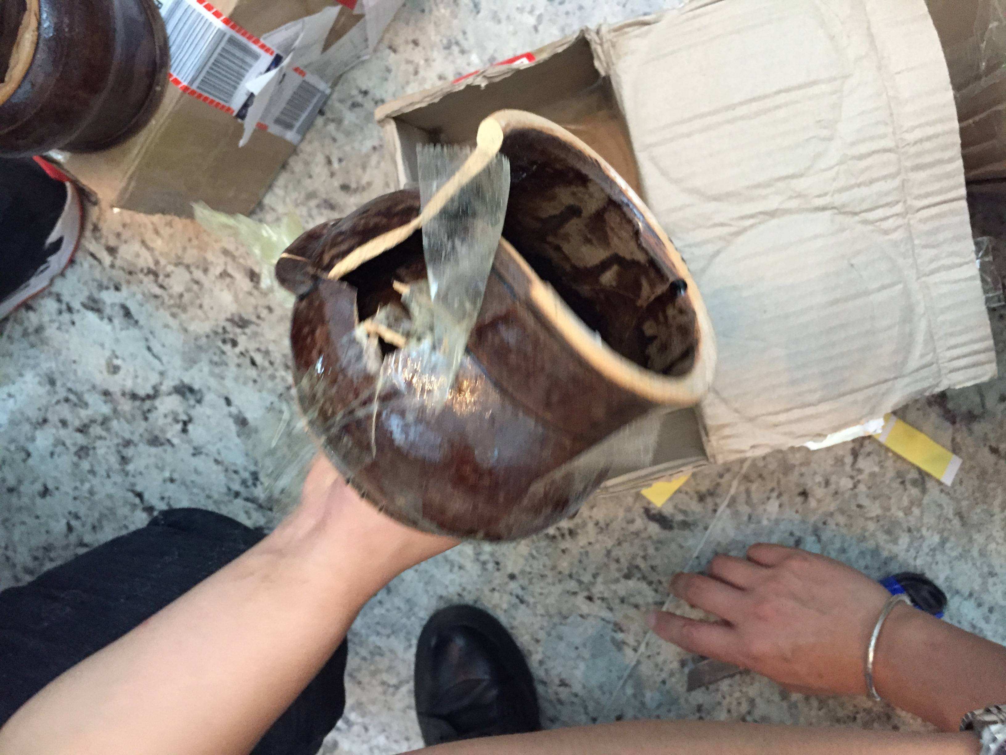 从贵州飞来的选手,参加本次美食交流大会“红厨帽餐厅团体赛”,来到国家会议中心报到处整理比赛用的烹饪餐具发,途中意外磕碎两个煲,看选手蹲在地上整理了很久,试着去拼凑起来……这会不会给他们本次的比赛带来影响呢?据了解这个煲是作为团体赛规定“汤”类作品要用到的,而且这个煲在贵州当地被申请为非物质文化遗产瓷器,很原生态……希望这样的意外不会给他们的整体参赛效果带来太大影响,也祝愿他们获得好的成绩!请持续关注东方美食明后天大赛实时播报!