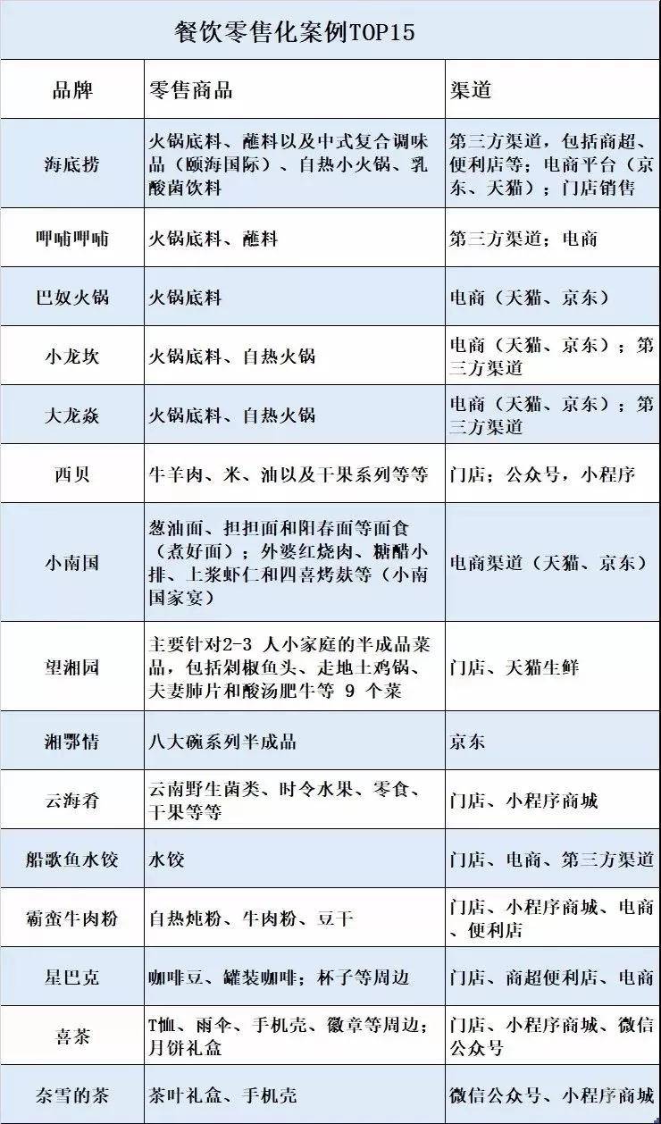 下面我们梳理了在餐饮零售化领域做得比较好的品牌,供大家参考(以下排名不分先后)