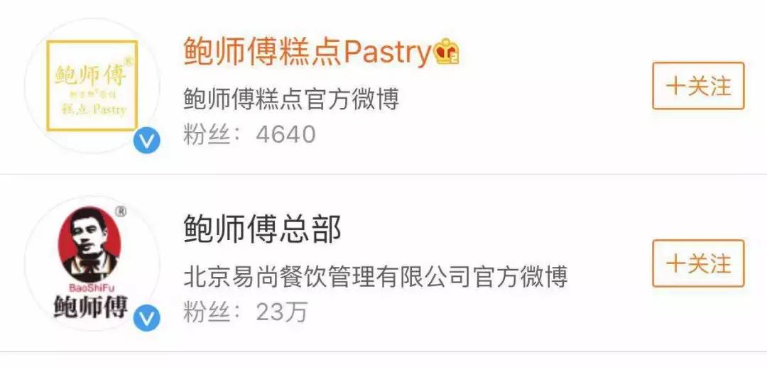 更让人意外是,鲍师傅官方微博“鲍师傅糕点Pastry”仅有4639个粉丝,其怒斥的“山寨公司”北京易尚开设的“鲍师傅总部”微博粉丝高达23万。