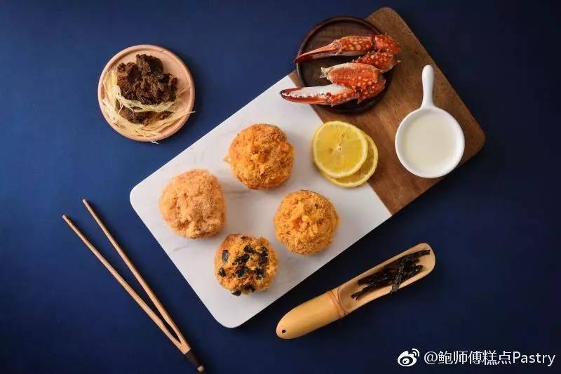 元宝形状的肉松小贝,是鲍师傅独创的特色产品。香甜松软的蛋糕,配上沙拉酱,再裹上一层牛肉松或猪肉松,这款拳头大小的糕点是门店的销量冠军。另外,鲍才胜及其研发团队陆续开发和改良了蛋黄酥、绿豆糕、枣糕等多款产品。鲍师傅选品都有着共同点:工序简单,可现做现卖,老少皆宜。