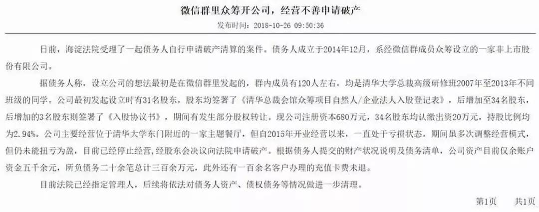 34名清华总裁班的同学众筹680万元,开了一家餐厅,结果破产了!还欠了300多万元,100多名顾客办理的充值卡费也没退!