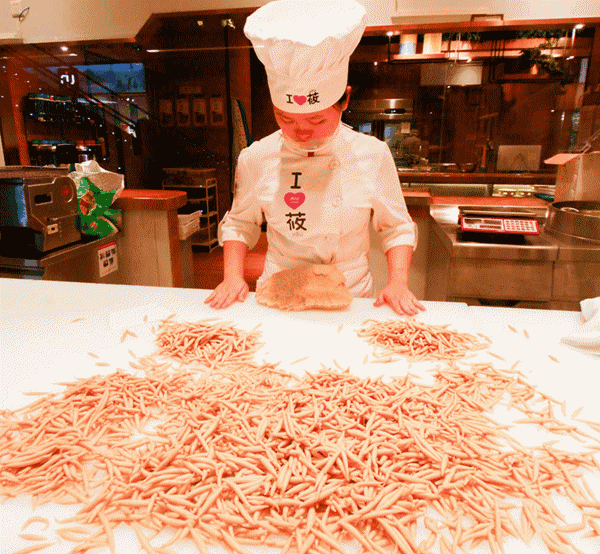 为了保证黄馍馍不会丧失原本的味道,贾国龙做了两件事:一是在配料上增加了小米面、白面、玉米面,五种面,馅料改成了豆沙加大红枣;二是实现手工制作的标准化。