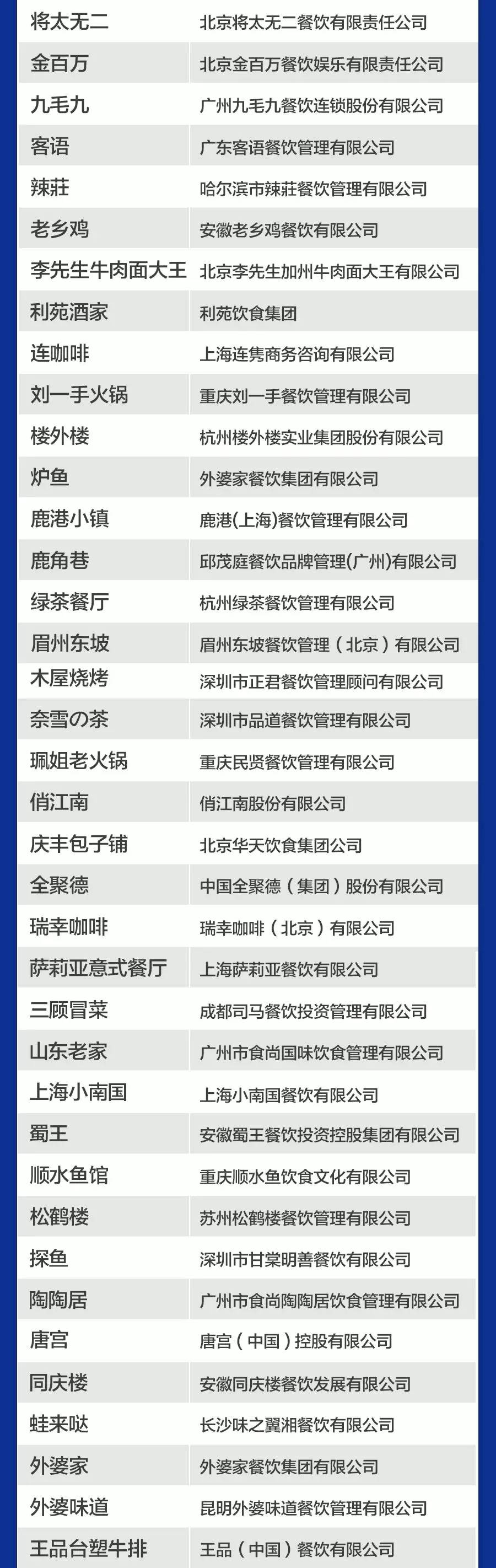 △“中国餐饮品牌力100强”名单