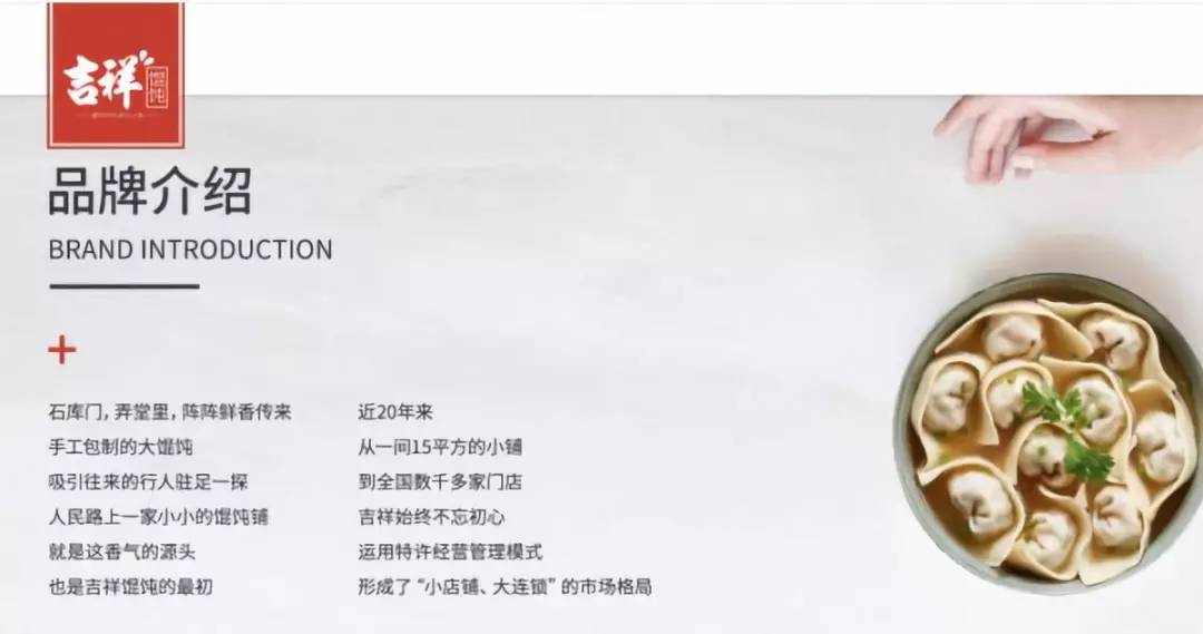 “石库门,弄堂里,阵阵鲜香诱人来”、“个大、汤浓、馅鲜”,这是上海人对手工包制的大馄饨“吉祥馄饨”美味的描述和点赞。自1999年人民路上诞生了第一家“吉祥馄饨”铺起,经过近20年的发展,“吉祥馄饨”全国连锁门店已逾2000家,覆盖十余省份,40多个城市。