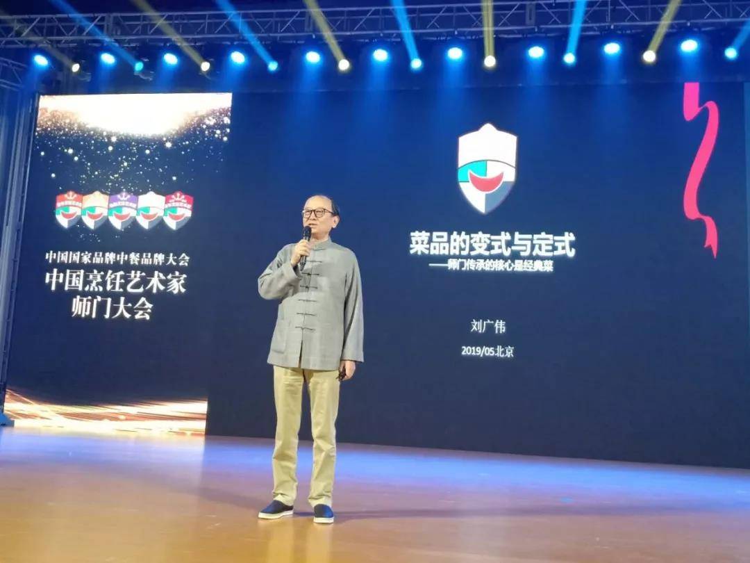 食学学科奠基人、北京东方美食研究院院长刘广伟先生宣布中国首届烹饪艺术师门大会开幕,并作了《菜品的定式与变式——师门传承的核心是经典菜》的主题演讲。