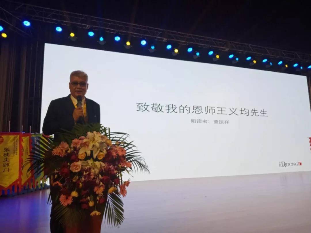 大董先生,在现场声情并茂地朗诵了自撰的文章《致敬我的恩师王义均先生》,师徒如父子,大董朗颂情到深处,台上台下师徒热泪盈眶,令在场嘉宾动容。