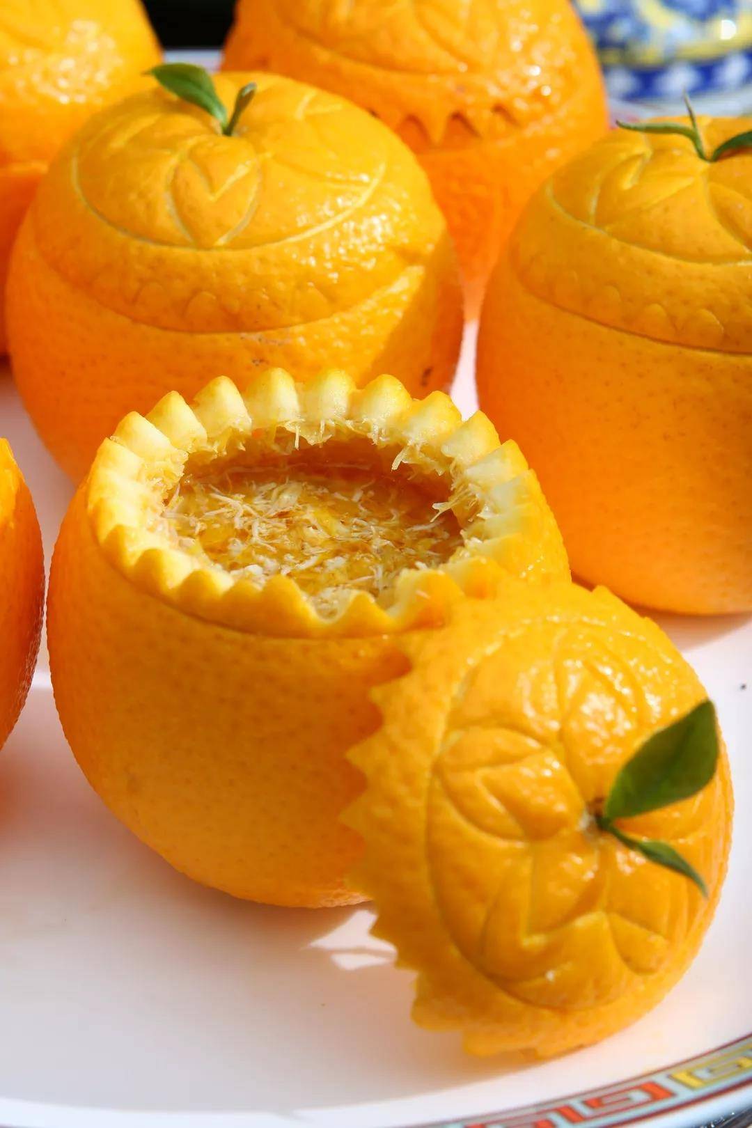蟹酿橙,取自南宋《梦梁录》十六卷:取黄熟带顶大橙子,截顶去瓤,留少许汁液,将蟹肉、蟹黄、蟹油酿入橙盅,装入小甑,以酒、水、醋蒸熟,用盐拌而食之。蟹酿橙的雏形,是南宋华贵之地的文雅之食,也是南宋美食家记录的菜谱引子,前辈们的挖掘创新,激发了董顺翔新的灵感,再创作出了现在的杭菜经典。