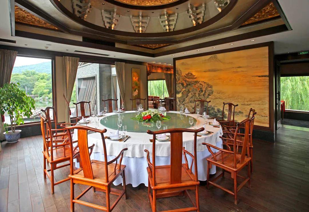 味庄入院即可看到亭台楼阁、绿树环抱。绕过九曲桥,古色古香的二层建筑融入了现代气息,落地窗户的设计让食客在吃饭时还可以欣赏西湖的美景。四季的知味观味庄都会给人不一样的感觉。大厅里的桌椅套着配套的餐布,以白色和绿色为主,特别清新。屋顶处天窗的设计,室内采光随自然光线变化而丰盈,完美融进湖光水色中。每个包厢都有不同的主题,从现代设计到仿古装潢应有尽有,可谓极致用心。