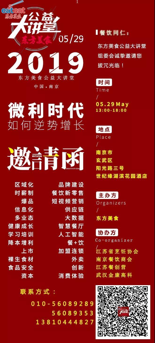 由北京东方美食主办的公益大讲堂活动(第二讲)将于5月29日13:00—18:00在南京世纪缘湖滨花园酒店举办。