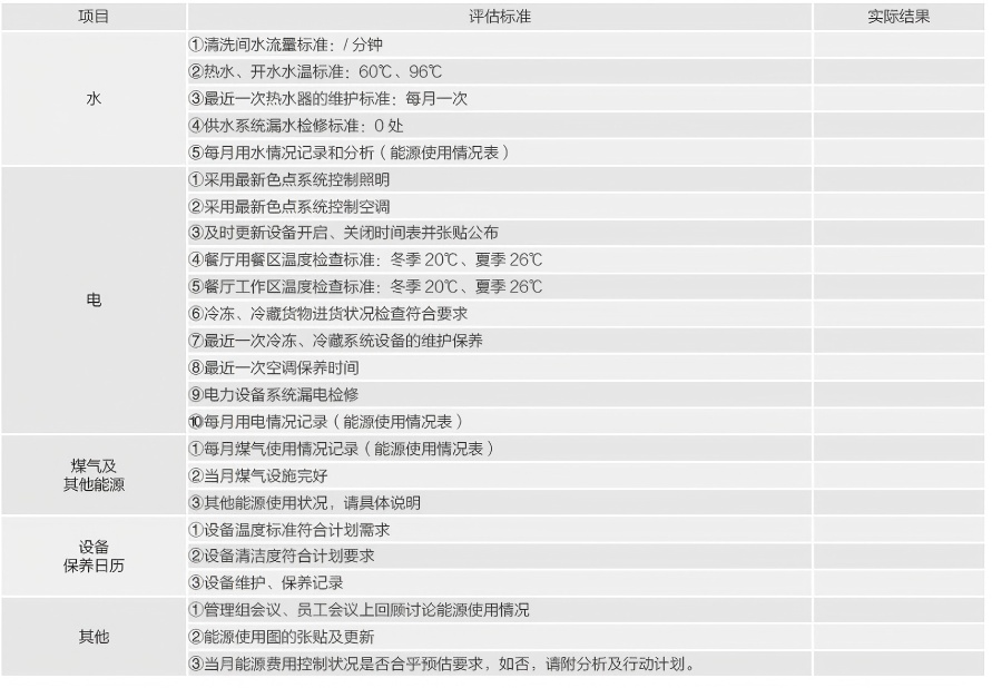 上述方法,构成了餐厅基础节能管理的骨架。然而,每家餐厅的业态、面积、设备情况都不同,如何定制适合自己的全套执行标准、考核量表,并形成长效管理机制,则需要更系统的知识框架和工具支持。