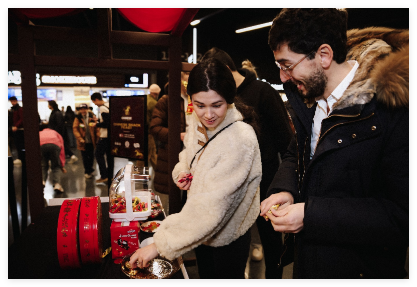 活动现场陈列并试吃了多款来自亚洲的经典新年零食,涵盖糖果、饼干、休闲食品等品类,让国际观众在观赛之余,沉浸式体验中国春节的“年味”。众多亚洲知名品牌,中国糖果第一品牌徐福记、火爆全美的3D水果冰淇淋AIKO GARDEN与大家一起共庆新春。